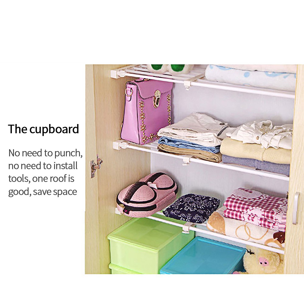 Amazon Com Hershii Closet Tension Shelf Rod Expandable Metal Storage Rack Adjustable Organizer Diy Divider Separator For Cabinet Wardrobe Cupboard Kitchen Bathroom 15 74 23 62inches Furniture Decor